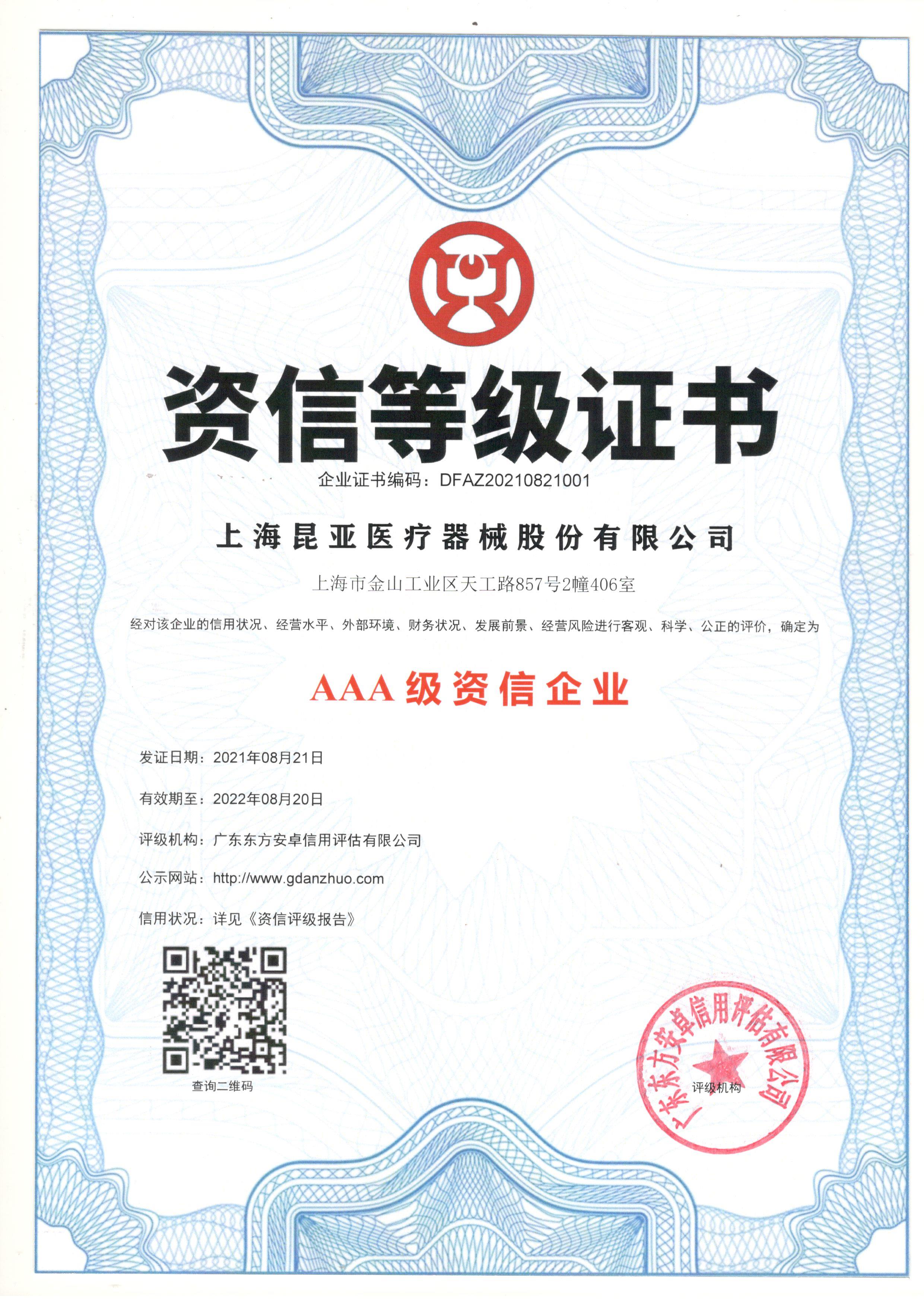 合同信息等級認定證書AAA級